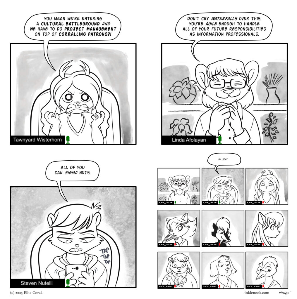 My crisis goes deep, but not deep enough that I want to quit the MLIS program. If the professors haven’t been telling us that we can go beyond libraries with our degrees, I would have given up all hope and tried my luck with livestreaming as a career. More on that later. In fact, if I didn’t know any better, I’d almost say with certainty that our professors are quietly warning us about the struggles and dangers the field is facing—if we don’t steel ourselves, we’re better off taking our ideas and work elsewhere.